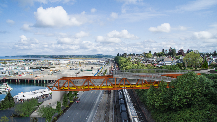 The Grand Avenue Park Bridge in Everett, Washington is a marriage of functional demands and aesthetic appeal. Seattle-based LMN Architects and KPFF Consulting Engineers completed this 257-foot-long asymmetrical bridge within three years in August 2020. The bridge connects Everett’s elevated Grand Avenue Park with the growing waterfront district and is bringing along with it a series of new civic spaces.
