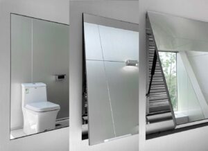Toilet is an architecture that is most relevant to the scale of a human body, in which the senses of smell and touch are amplified. The ventilation shutters are hidden behind the mirror. The top form air convection, provide a more comfortable interior environment. The periscope design extends the physical boundary, through which users could sit and enjoy the scenery.The floor plan of each toilet is two meters wide square, within which the various components of the entire building, such as light steel structure, aluminum panels, ventilation shutters, rotating mirrors, and sanitary ware, can meet modular industrial production. Different heights of each periscope allow users in each toilet to have different views, meanwhile, group the modular units into an architecture landscape.