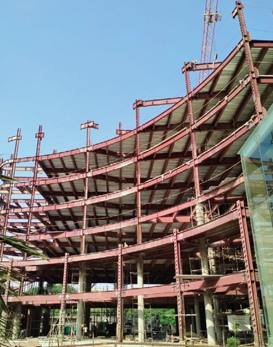 Shalimar’s new Edifice is a composite steel structure high rise standing approximately 30 meters in height and is the state-of-the-art building in Lucknow. The structure is a steel pre-engineered building with 2 basements plus 9 floors.
