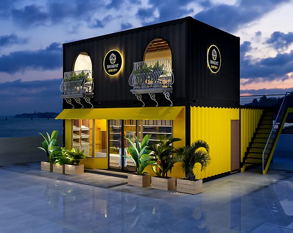 The overall experience was quite interesting since the architectural vision was to retain the inherent structure of the container without making many changes to the structural elements of the container, as well as add aesthetic elements externally which will ultimately lead to the reduction of overall cost and ease in transportation and installation.