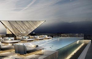 A 180-degree view has been provided from the all-day dining area and the terrace to allow the guests to soak up the natural beauty of the surrounding, emphasized by an over-edge infinity pool. The all-day dining area and swimming pool have been strategically placed on the top of the building for the convenience of the guests of the hotel.