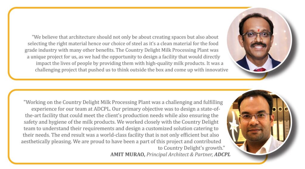 A milk processing plant is a facility where raw milk is received, processed, packaged and stored for distribution. Such plants require a well-designed and well-constructed facility to ensure the safety and quality of milk products. The milk processing plant designed for Country Delight in Haryana is an innovative and functional facility aimed at sourcing raw products from nearby areas and producing good quality and unadulterated and contamination-free milk products.
