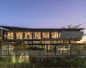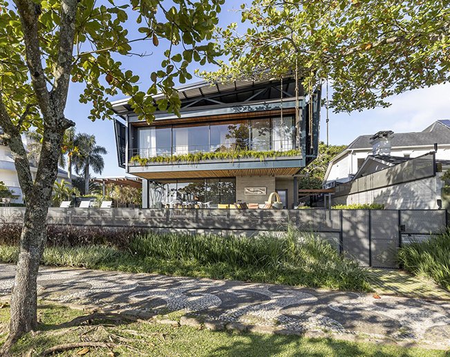 The necessities program had a gym and an office separate from the main volume and the master plan required a small percentage of use, the clients wanted something more straight linear but with boldness in relation to the surroundings, the design was based on visual freedom from the entrance of the house, opening the access gate, the service entrance and even the garage doors, any access to the house allows the gaze to cross the  land and privilege the view to the sea. The shape was thought of as a vessel on the edge of the sea, the roof reflects this idea and the linear shape reinforces the small movement towards the beach.