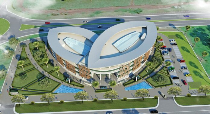 Spread over an area of 3.12 acres, the site planning of the complex judiciously responds to the climatic and contextual challenges of Mauritius. The site’s natural slope from northeast to southwest is maintained with a beautifully accentuated design. An integrated and seamless vehicular circulation plan has been proposed to provide barrier-free movement to its users, with segregated traffic plans for vehicles. The entrance to the complex is provided from the inner road to give ample space from the bustle of the outer highway. Shaded bicycle pathways and tracks along the site have also been designed specifically for pedestrians.
