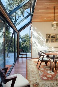 Sustainability and energy efficiency being paramount design concerns in an ecologically sensitive context, the Villa in the Woods utilises a range of measures to reduce its environmental impact.