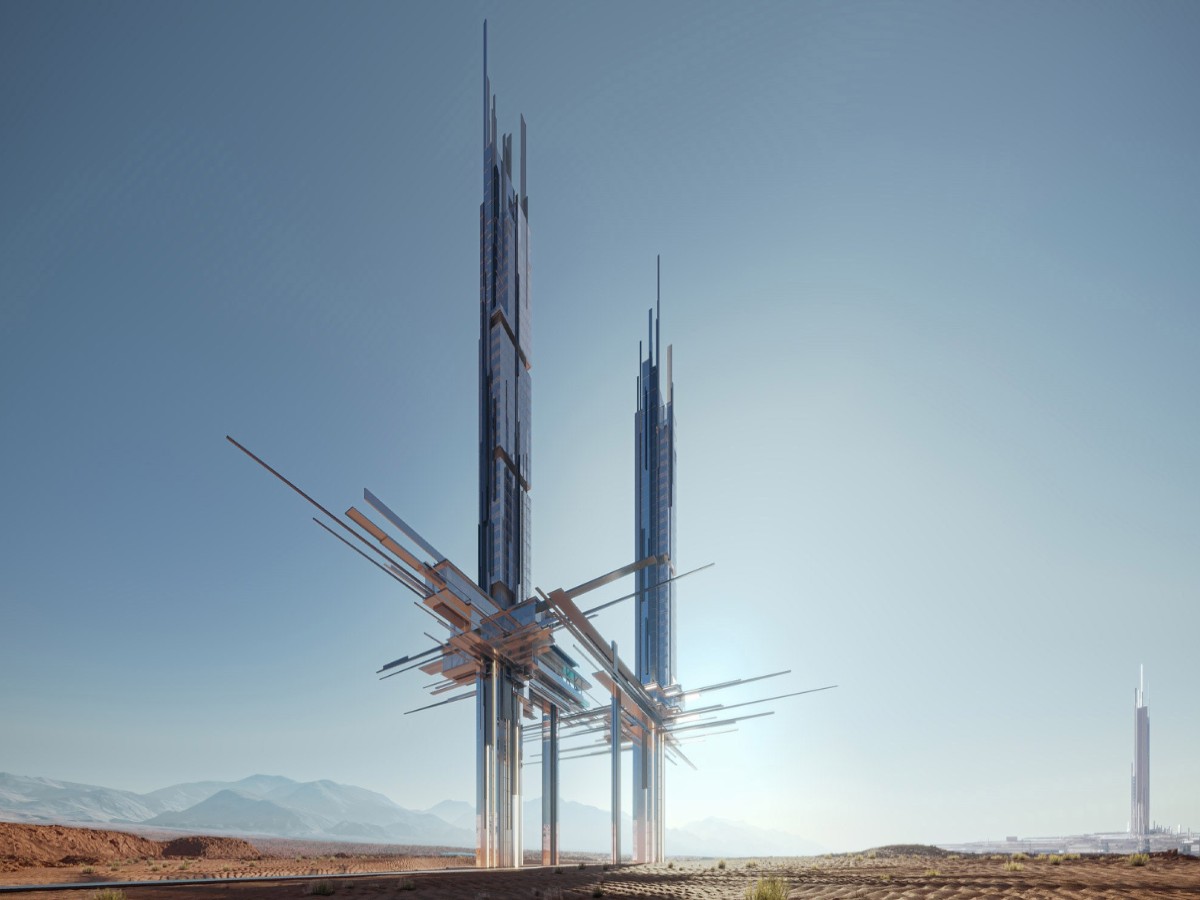Designed by the renowned international architecture firm 10Design, Epicon consists of two angular towers, one reaching 225 m and the other soaring to 275 m. Both towers are clad in a mirror-like reflective steel that amplifies their sleek, cutting-edge design. The structures feature cantilevered planes that extend beyond the towers, defying traditional engineering concepts with their gravity-defying appearance. These planes contribute to the towers’ surreal appeal, giving them a distinctive, futuristic look that blends effortlessly with the surrounding desert and coastline. The reflective steel on the exterior adds to the building’s striking appearance while also improving energy efficiency by reducing heat absorption and keeping the interior cooler.
