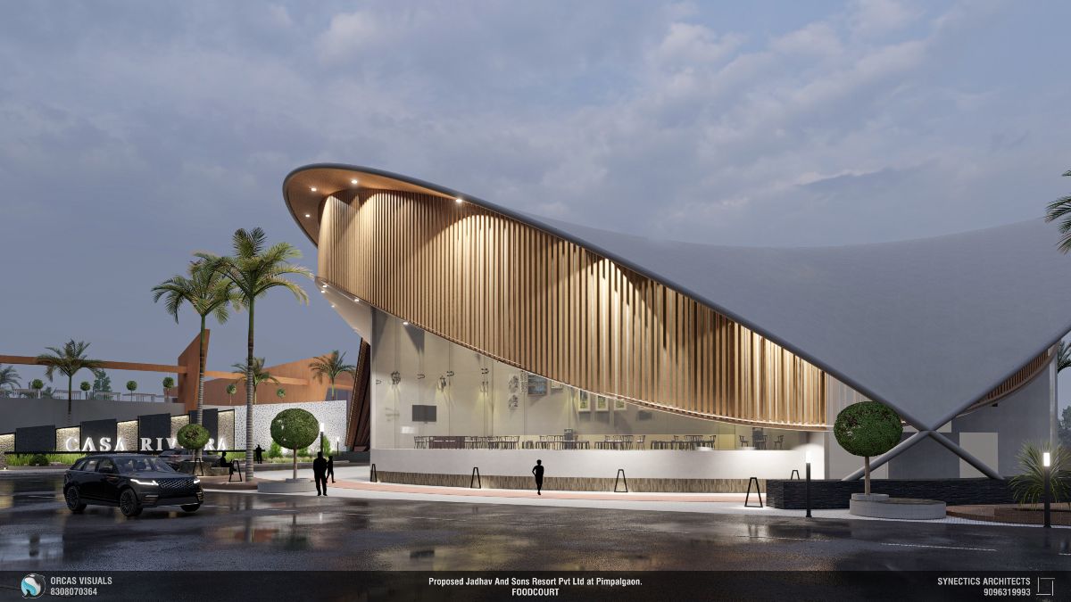 The Casa Riviera in Pimpalgaon, Maharashtra, reflects the architect’s vision of creating a vibrant, multifunctional space that fosters community interaction and user engagement. The design integrates modern architectural trends, blending functionality with aesthetics. Facilities are strategically placed to enhance connectivity, offering a cohesive experience where leisure, dining, and social interaction converge. The food court’s thoughtful layout incorporates shaded outdoor seating, promoting a seamless connection with the surrounding environment.