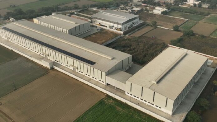 Inside the production halls, High Volume Low Speed (HVLS) fans maintain air circulation across large floor plates, delivering thermal comfort at substantially lower energy consumption than conventional cooling systems. Rooftop solar panels contribute to on-site renewable energy generation, reducing reliance on grid power and lowering operational carbon emissions.