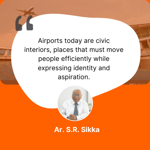 For Ar. S.R. Sikka, this reflects a broader cultural transition. Airports, he notes, are no longer merely about processing passengers. They are about hosting people. Terminals today are increasingly conceived as destinations in their own right. “The journey does not begin at the boarding gate,” he remarks, “it begins the moment a passenger enters the building.”